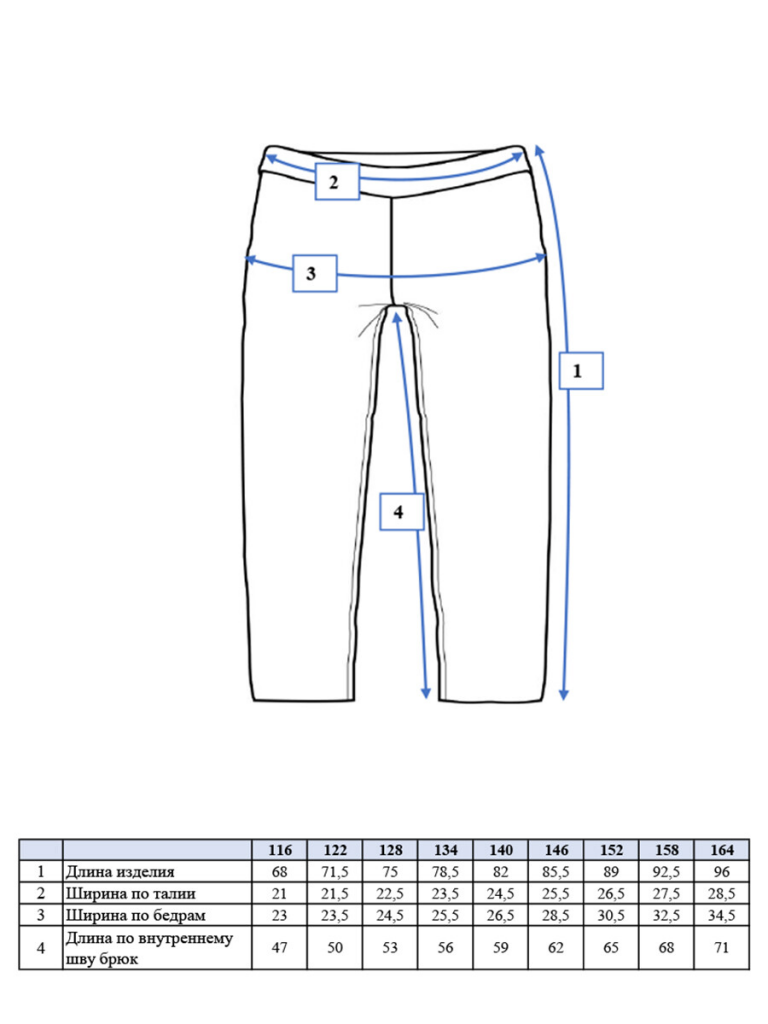 | Рост, см | 98 | 104 | 110 | 116 | 122 | 128 | 134 | 140 | 146 | 152 | 158 | 164 | 170 |
