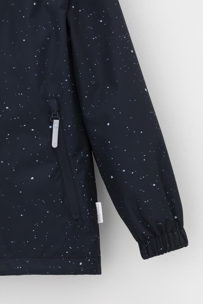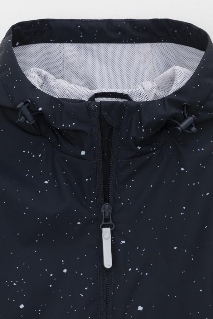 Ветровка для мальчика из мембранной ткани с дополнительной тефлоновой обработкой. Верхняя мембранная ткань 1000/1000 с тефлоновым покрытием отталкивает воду и грязь и обладает «дышащими» свойствами. Подкладка выполнена из сетки, 100% полиэстер. У изделия предусмотрена защита подбородка. Несъемный капюшон утягивается с помощью регулирующего шнура со стопперами. На рукавах эластичные манжеты. Низ изделия регулируется эластичной утяжкой со стопперами. Во всех изделиях верхнего ассортимента для безопасности ребенка предусмотрены светоотражающие элементы.