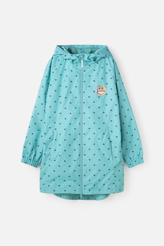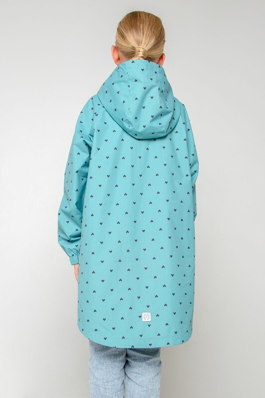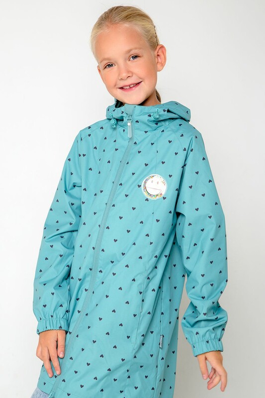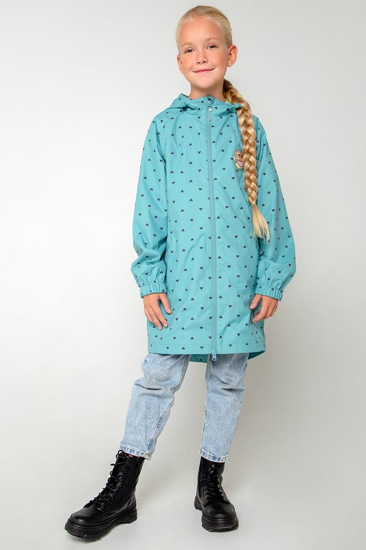 Плащ без утеплителя. Рекомендованный температурный режим: от +15° и выше без поддевы и от +8° и выше с поддевой. Верхняя мембранная ткань 1000/1000 с тефлоновым покрытием отталкивает воду и грязь и обладает «дышащими» свойствами. Подкладка выполнена из 100% полиэстера (сетка). Застёгивается на молнию с двумя замками, предусмотрена защита подбородка. Дополнительная ветрозащитная планка внутри. Удлинённая спинка скруглена. Капюшон не снимается, эластичный шнур утягивается и обеспечивает плотное прилегание к голове. Эластичные манжеты на резинке. Боковые карманы на молнии. На груди нашивка с глиттером. Светоотражающие элементы служат для безопасности в тёмное время суток.