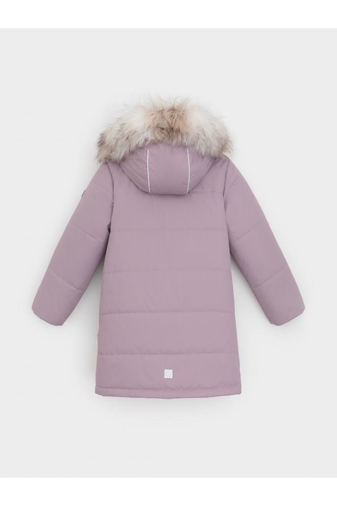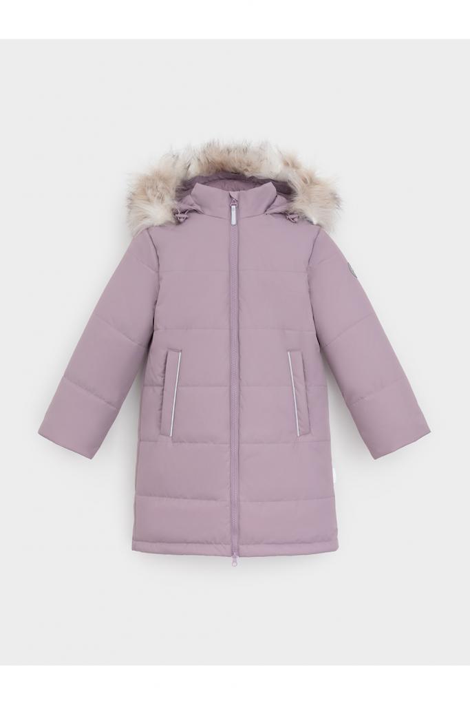 Зимнее пальто для девочки с утеплителем SEE®: 250 г/м2 и с подстёжкой из натурального гусиного пуха (70%) и пера (30%). Выполнено из мембранной ткани с дополнительной тефлоновой обработкой, которая предохраняет изделие от загрязнений и отталкивает влагу. Подклад выполнен из 100% полиэстера Tricot. Пальто застёгивается на молнию, предусмотрена защита подбородка. Несъёмный капюшон имеет эластичные утяжки и отстёгивающийся искусственный мех. По бокам два кармана на молнии. В рукавах мягкие внутренние манжеты. Подстёжка присоединяется к внешнему пальто, также возможно носить её отдельно как лёгкий пуховик. Во всех изделиях верхнего ассортимента для безопасности ребёнка предусмотрены светоотражающие элементы.