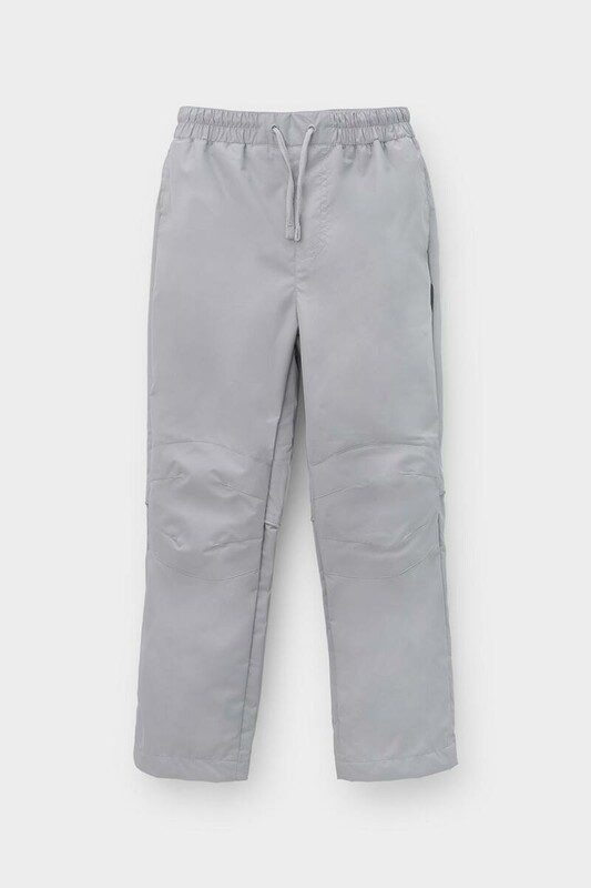 Ветровочные брюки из мембранной ткани с дополнительной тефлоновой обработкой. Данный вид обработки предохраняет изделие от загрязнения и лучше отводит влагу. Подклад из флиса, 100% полиэстер. Эластичный пояс утягивается при помощи шнурка. Ширина низа регулируется утяжкой со стопперами. Во всех изделиях верхнего ассортимента для безопасности ребенка предусмотрены светоотражающие элементы.