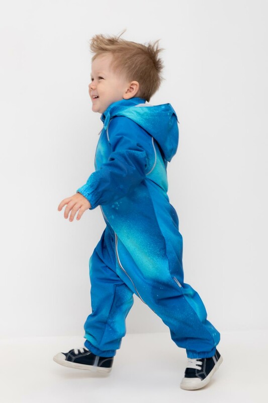 Ветровочный комбинезон ясельный из мембранной ткани с дополнительной тефлоновой обработкой. Данный вид обработки предохраняет изделие от загрязнения и лучше отводит влагу. Подклад из 100% хлопка. У изделия удлиненная молния для легкого одевания с защитой подбородка. Утяжка на капюшоне с потайными стопперами. По низу рукавов и брючин, а также на спинке изделия эластичная резинка для лучшего прилегания. Для фиксации комбинезона используются съемные силиконовые штрипки. В размерах 74-80 функциональные отвороты на рукавах и брючинах. Во всех изделиях верхнего ассортимента для безопасности ребенка предусмотрены светоотражающие элементы.
