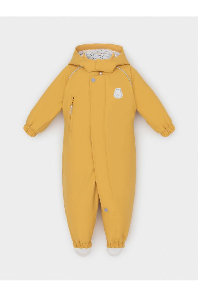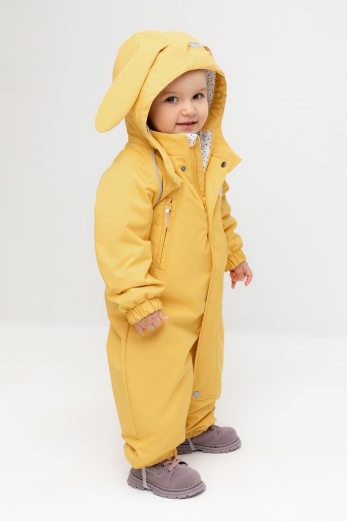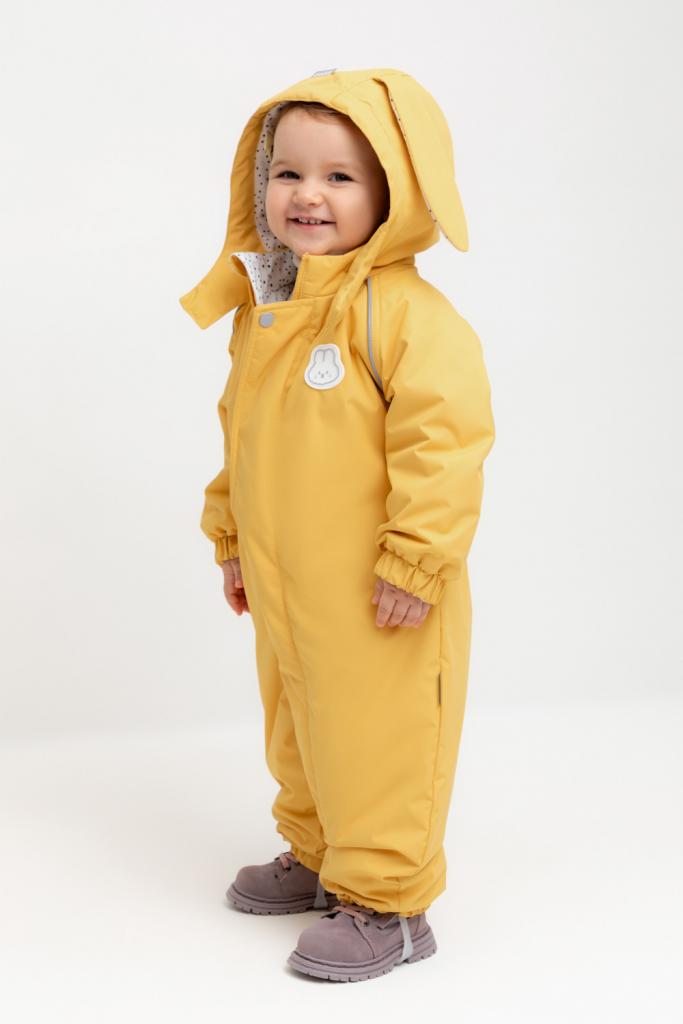 Демисезонный комбинезон ясельный с утеплителем SEE® 120 г/м2. Выполнен из мембранной ткани с дополнительной тефлоновой обработкой. Данный вид обработки предохраняет изделие от загрязнения и лучше отводит влагу. Подклад из 100% хлопка. Удлиненная молния для легкого одевания с защитой подбородка. Ветрозащитная планка фиксируется на липучках и кнопках. Утяжка на капюшоне с потайными стопперами. По низу рукавов и брючин, а также на спинке изделия предусмотрена эластичная резинка для лучшего прилегания. Для фиксации комбинезона используются съемные силиконовые штрипки. В размере 74-80 функциональные отвороты на рукавах и брючинах. Во всех изделиях верхнего ассортимента для безопасности ребенка предусмотрены светоотражающие элементы.