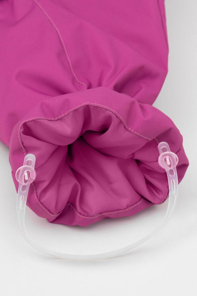 Демисезонный комбинезон для девочки с утеплителем SEE®: 120 г/м2. Выполнен из мембранной ткани с дополнительной тефлоновой обработкой. Данный вид обработки предохраняет изделие от загрязнения и лучше отводит влагу. Подклад из 100% полиэстра. У изделия удлиненная молния для легкого одевания с защитой подбородка. Ветрозащитная планка фиксируется на липучках и кнопках. Несъемный капюшон с эластичной резинкой и застежкой на липучку.По низу рукавов и брючин, а также на спинке изделия предусмотрена эластичная резинка для лучшего прилегания. Функциональный карман с молнией на груди. Для фиксации комбинезона используются съемные силиконовые штрипки. Во всех изделиях верхнего ассортимента для безопасности ребенка предусмотрены светоотражающие элементы.