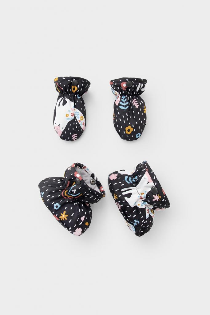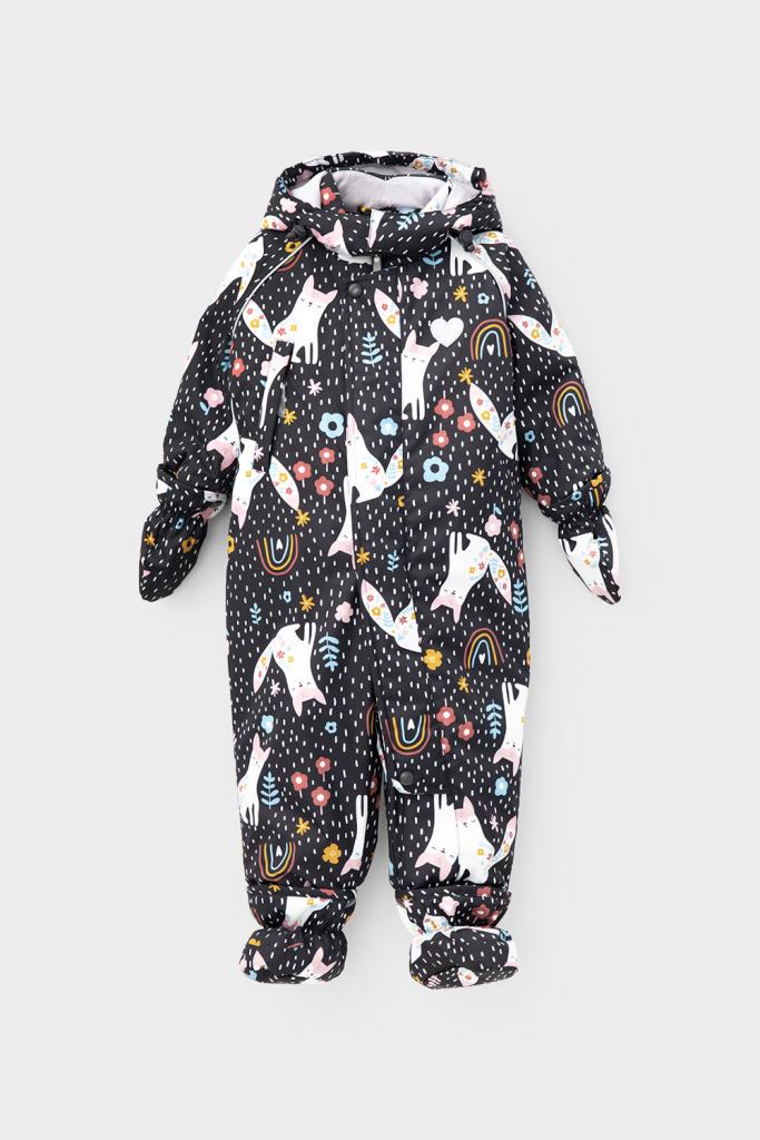 • Дополнительно в размерах 74-80, 80-86 пристегивающиеся утепленные варежки и пинетки.