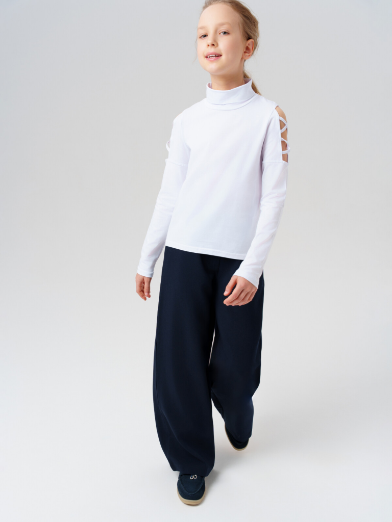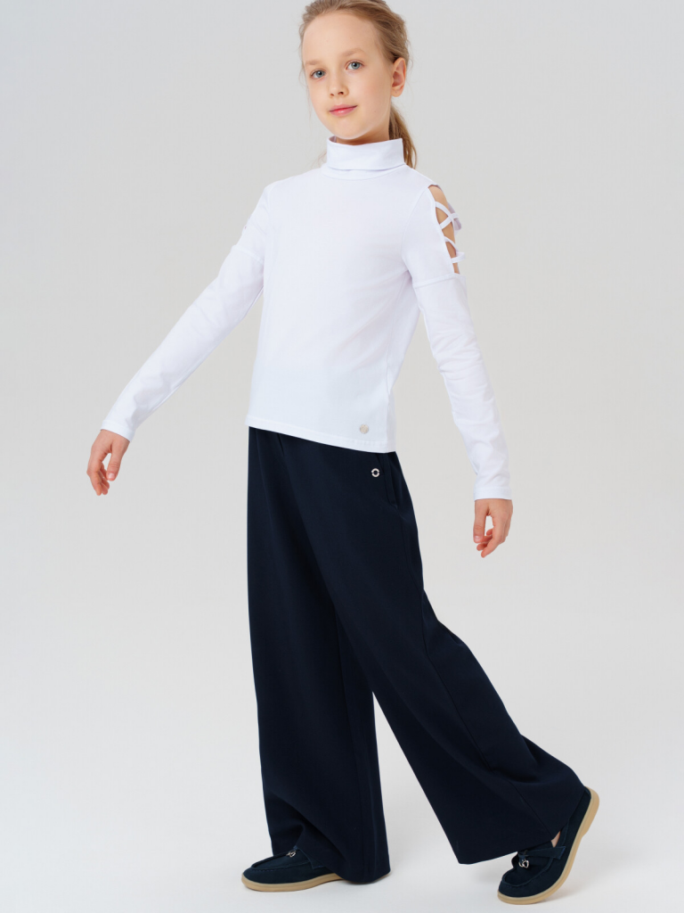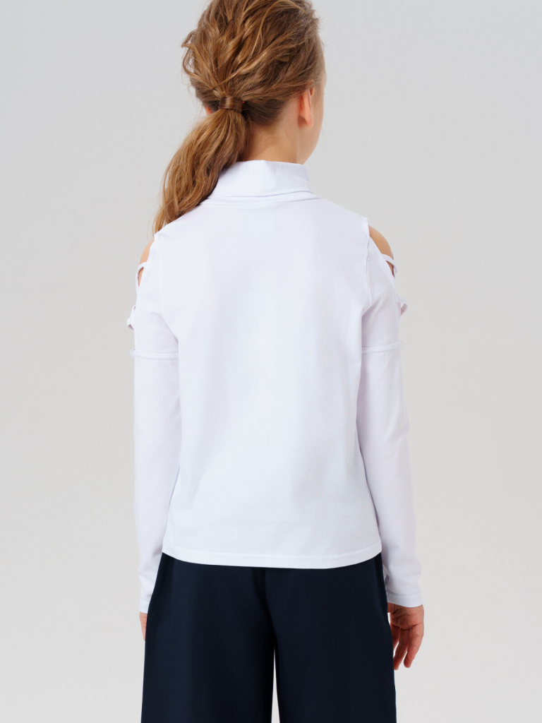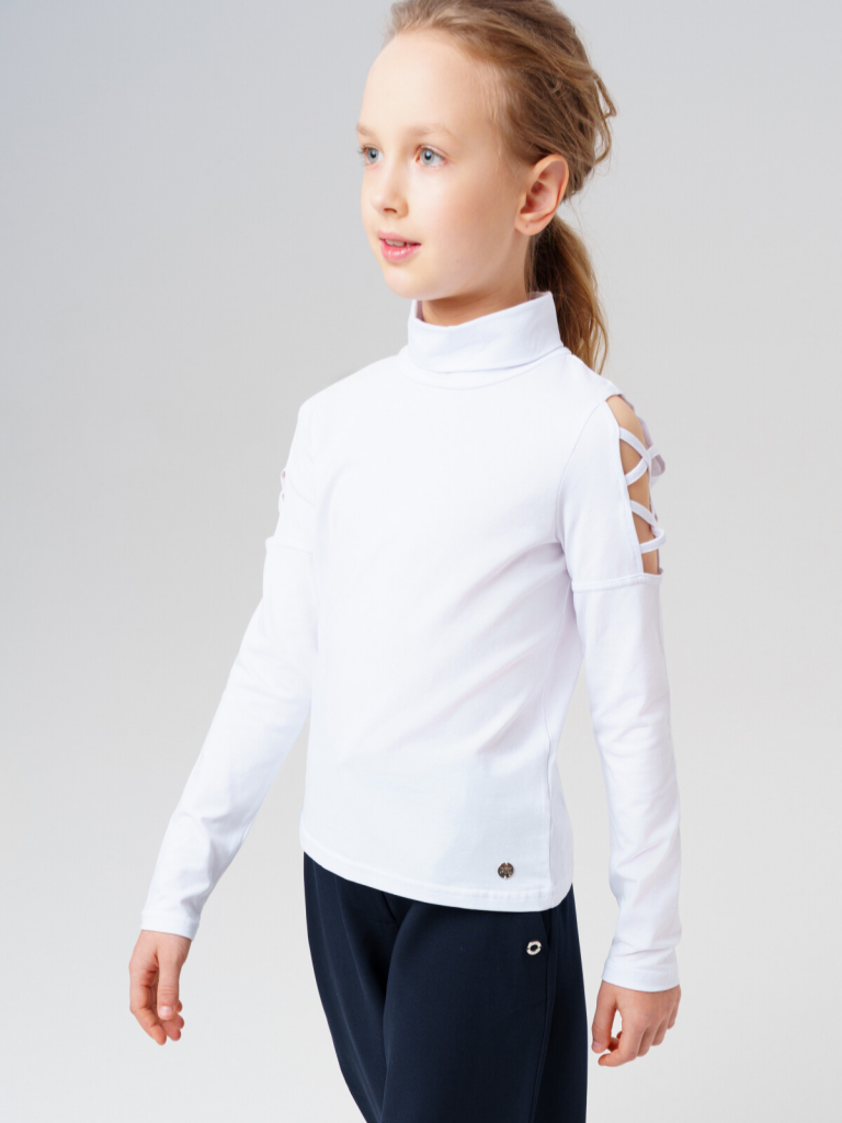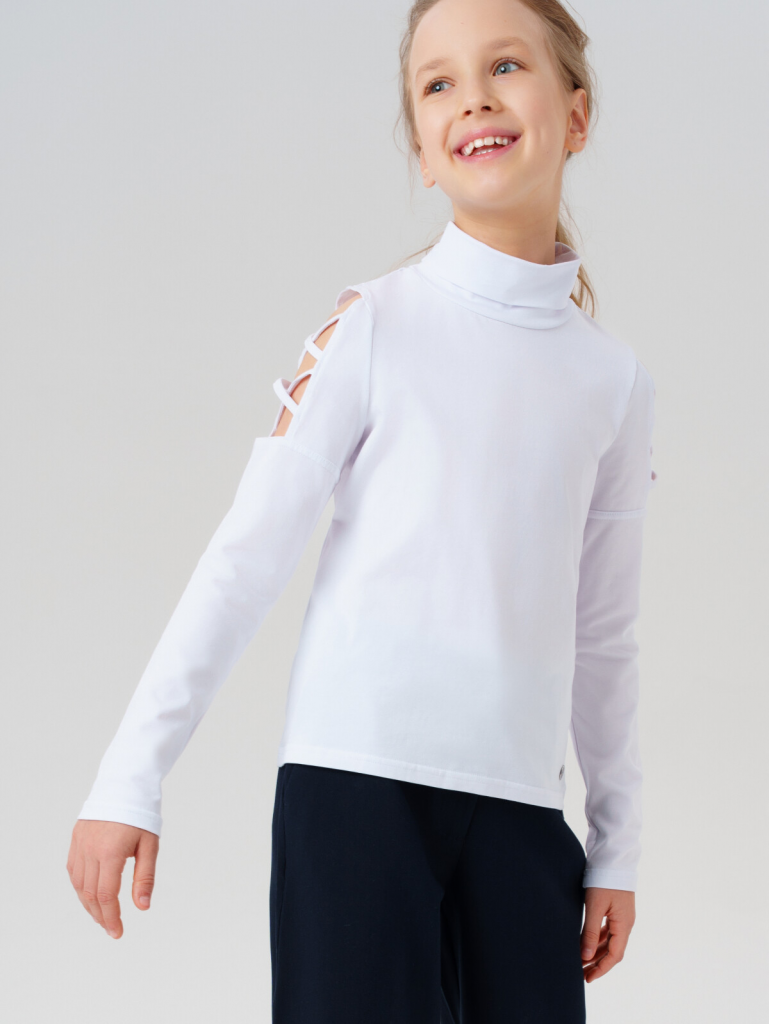 Белая трикотажная водолазка для девочкиЭлегантный базовый элемент школьного гардероба!Ключевые особенности:+ Классический воротник-стойка с отворотом — согреет в прохладную погоду+ Прилегающий силуэт — аккуратно сидит по фигуре+ Универсальный белый цвет — сочетается с любой школьной формойПочему стоит выбрать:+ Идеальна для школы — соответствует строгому стилю+ Удобно носить в школу и на дополнительные занятия+ Подходит для девочки-школьницы и подростка+ Детская модель с учетом особенностей фигурыШкольная, стильная, удобная — must-have гардероба юной леди!