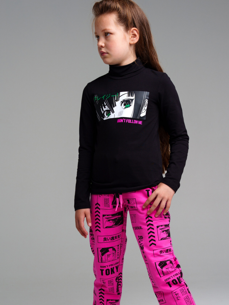 Водолазка трикотажная для девочек черный,разноцветный