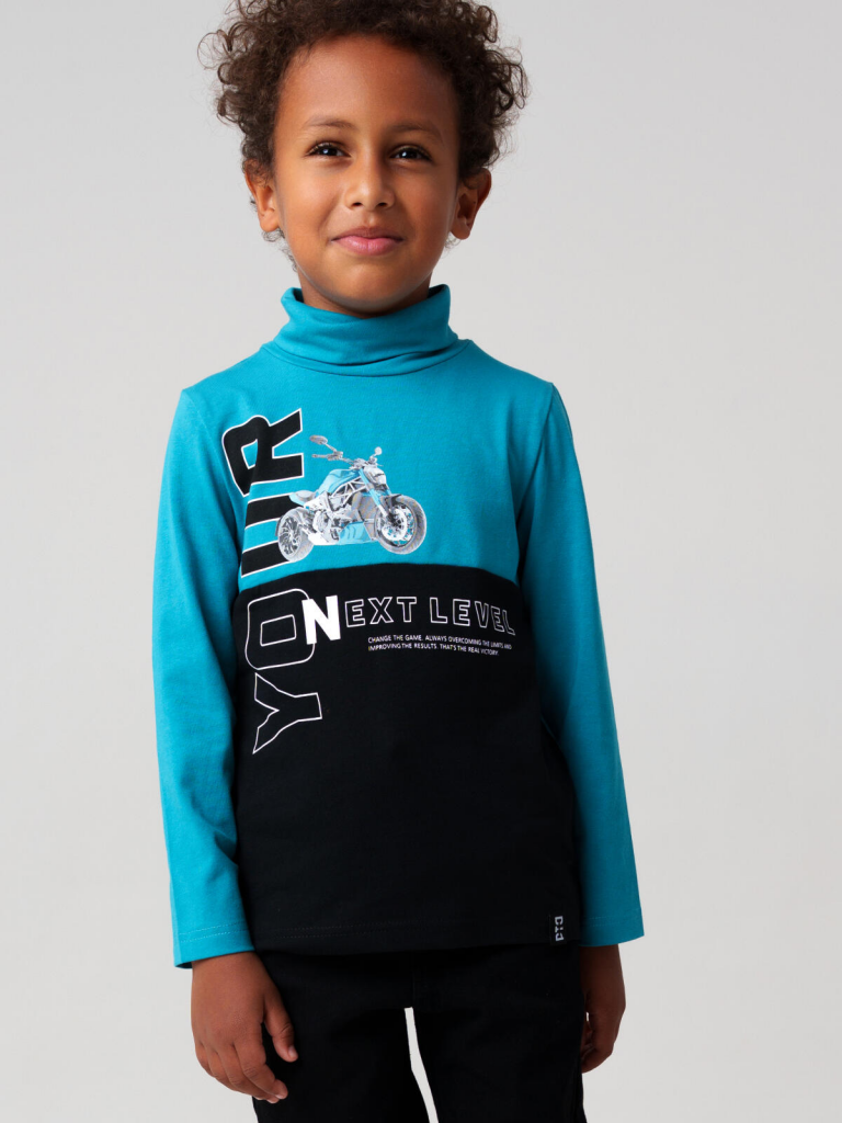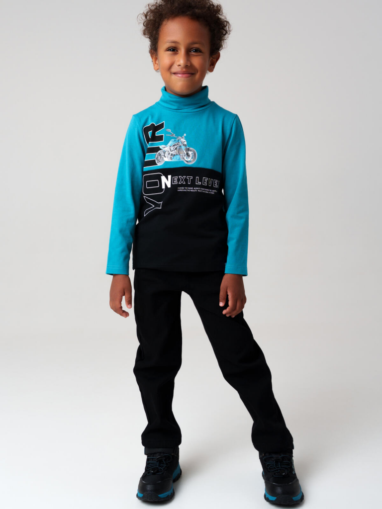 > Водолазка трикотажная для мальчиков черный,бирюзовый