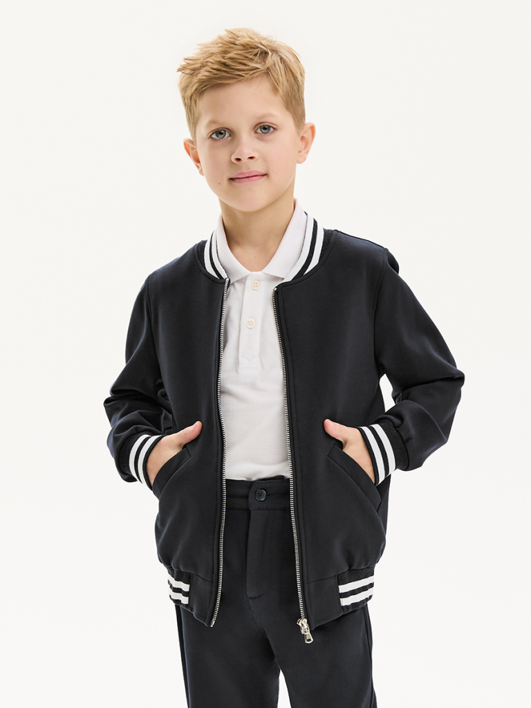 Бомбер можно носить самостоятельно или собрать костюм из нашей школьной коллекции, дополнив образ брюками или юбкой-шортами. Такой комплект будет идеальным выбором для школьной формы.