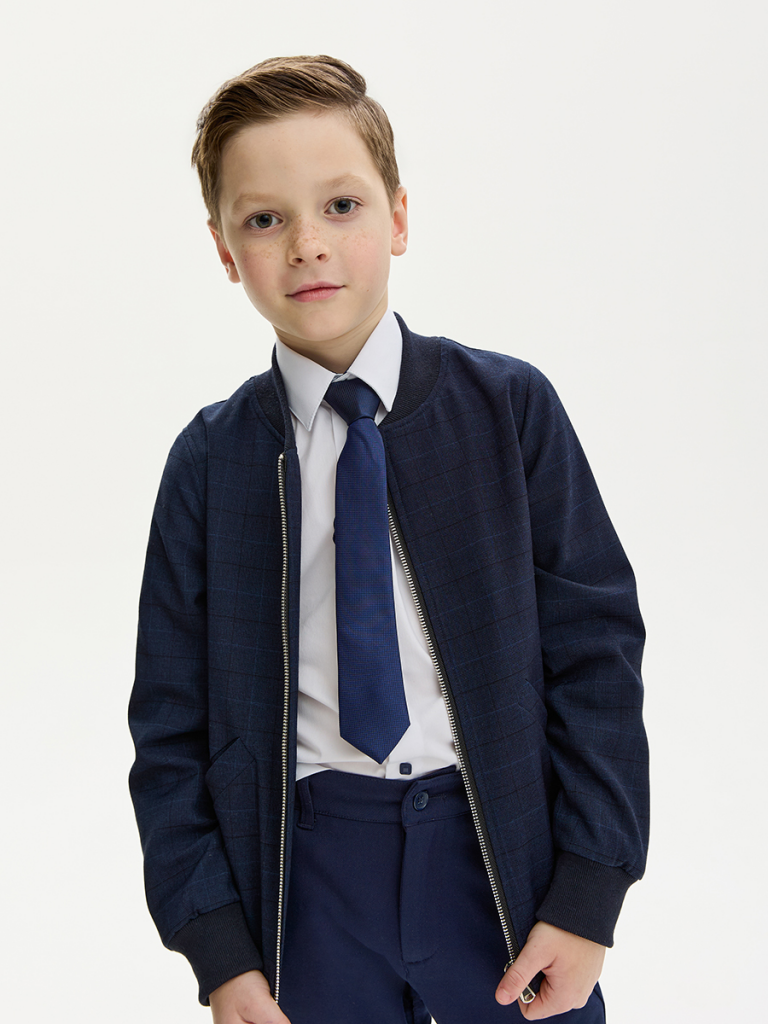 Бомбер можно носить самостоятельно или собрать костюм из нашей школьной коллекции, дополнив образ брюками. Такой комплект будет идеальным выбором для школьной формы.