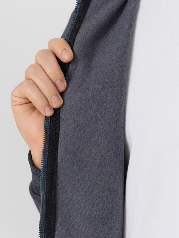 Функциональность жакета дополняет вместительный карман-кенгуру и эластичный пояс из рибаны, которые сохраняют форму при активной носке. Двусторонняя молния и продуманный крой позволяют легко комбинировать модель с джинсами, брюками или спортивной одеждой.
