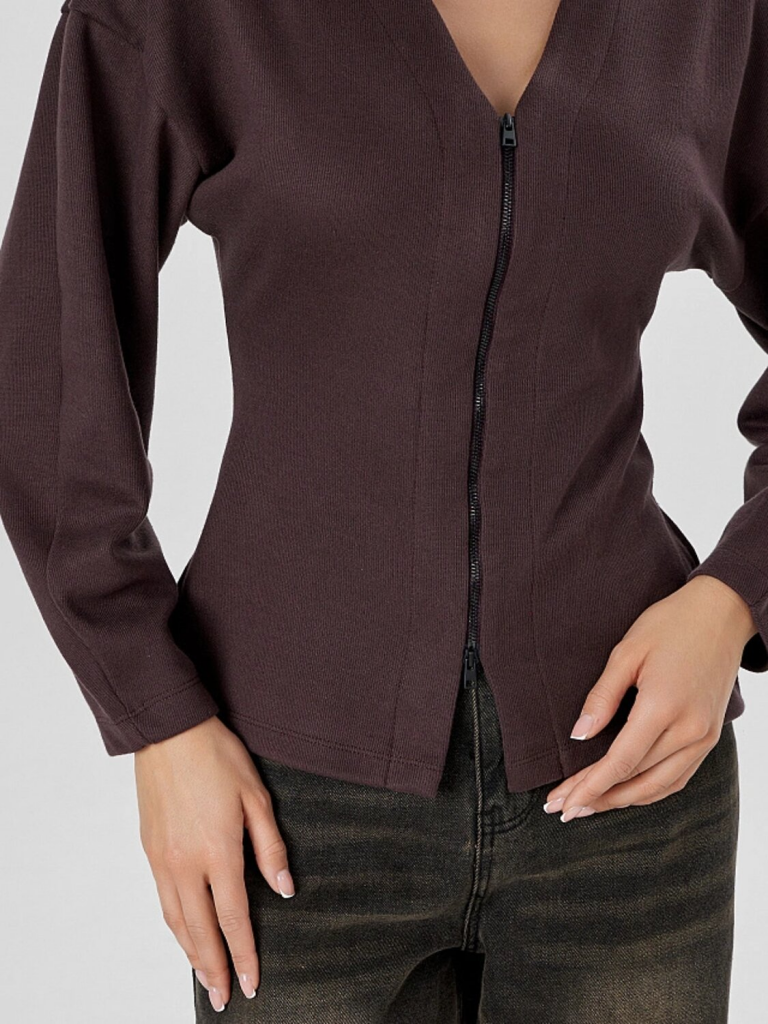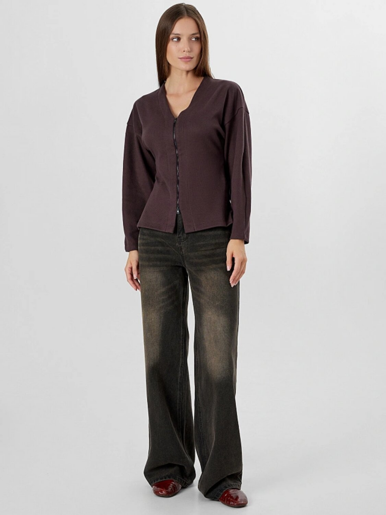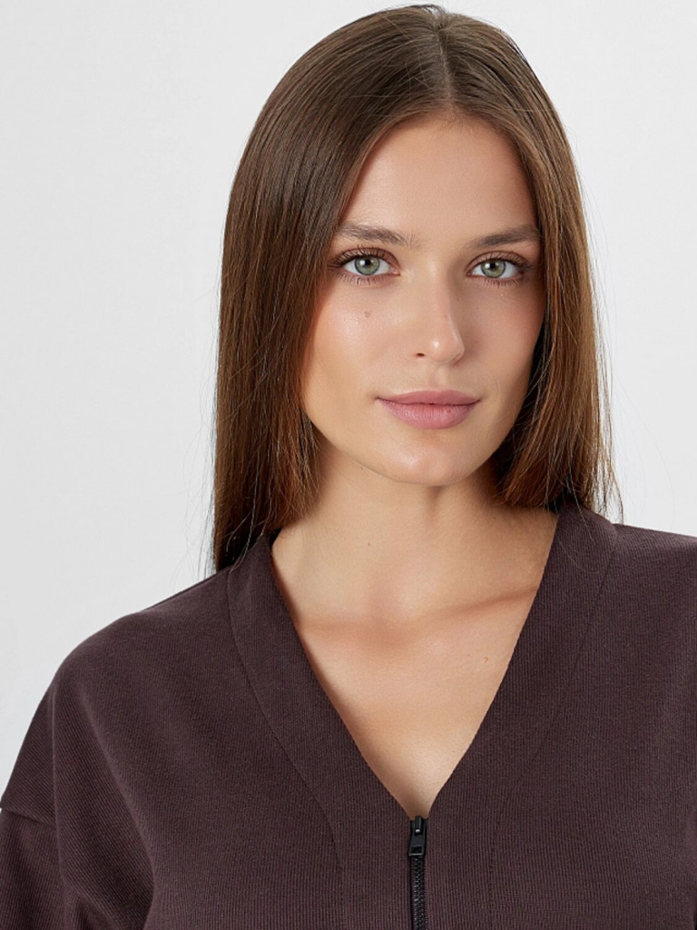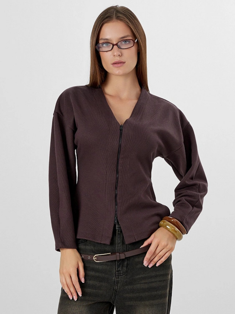 Центральная застежка на молнию делает жакет удобным в ежедневном использовании и универсальным для разных образов.