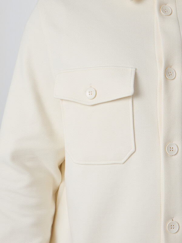 Центральная застежка на пуговицы (d=20 мм). На деталях переда накладные карманы с клапанами, с застежкой на пуговицы. Линия плеча слегка спущена. Рукава втачные длинные. Манжеты отрезные с застежкой на пуговицу.Отделочные строчки по окату рукава, плечевым швам. Нижний срез жакета обработан швом вподгибку.