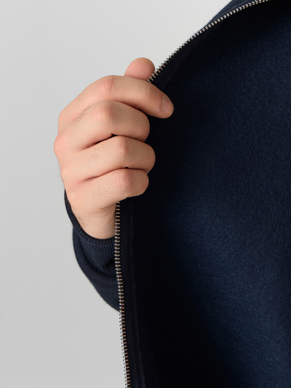 Горловина округлой формы с воротником стойкой из основного полотна.