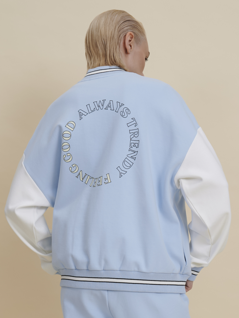 Женский бомбер в актуальном стиле преппи. Куртка комфортного объёма со спущенным плечом подарит вам комфорт и свободу движений. Обработка горловины, низа и низа рукавов из резинки в университетском стиле. Модель выполнена из гладкой и тактильно приятной ткани, которая при этом держит форму. В составе ткани преобладает высококачественный хлопок — бомбер мягкий и великолепно пропускает воздух, давая коже дышать. Благодаря эластану куртка сохраняет отличную форму в течение продолжительного времени. Жакет декорирован нашивкой и принтом по переду, а также принтом на спинке. Принты эластичные и стойкие — без проблем переносят многочисленные стирки. Модель представлена в нескольких цветах: синий бомбер, голубой, бежевый. Её просто комбинировать с любыми брюками, джинсами. Размерная линейка: XS (42), S (44), M (46), L (48), XL (50). Изделие подходит не только женщинам и девушкам, это отличный бомбер для девочки подростка. Такую куртку можно носить на работу, учёбу, на прогулки, на отдых. Бомбер трикотажный женский подходит для круглогодичного применения: прохладным летом, осенью, зимой, весной и демисезон. Это чудесный подарок маме, подруге или сестре на любой праздник. Выбирайте нужный размер по таблице размеров на фото. Цвет товара на экране вашего устройства может отличаться от цвета изделия вживую.