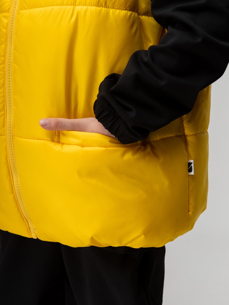 Демисезонный теплый жилет средней длины, прямого кроя, без капюшона. Материал жилета FITSYSTEM имеет специальное водонепроницаемое и водоотталкивающее покрытие и пропитку, защищает от дождя, влаги и ветра. Материал верха: Fitsystem 100% полиэстер, утеплитель Hetta Filt S2 250 г/кв.м, подкладочный материал кулирная гладь 100% хлопок