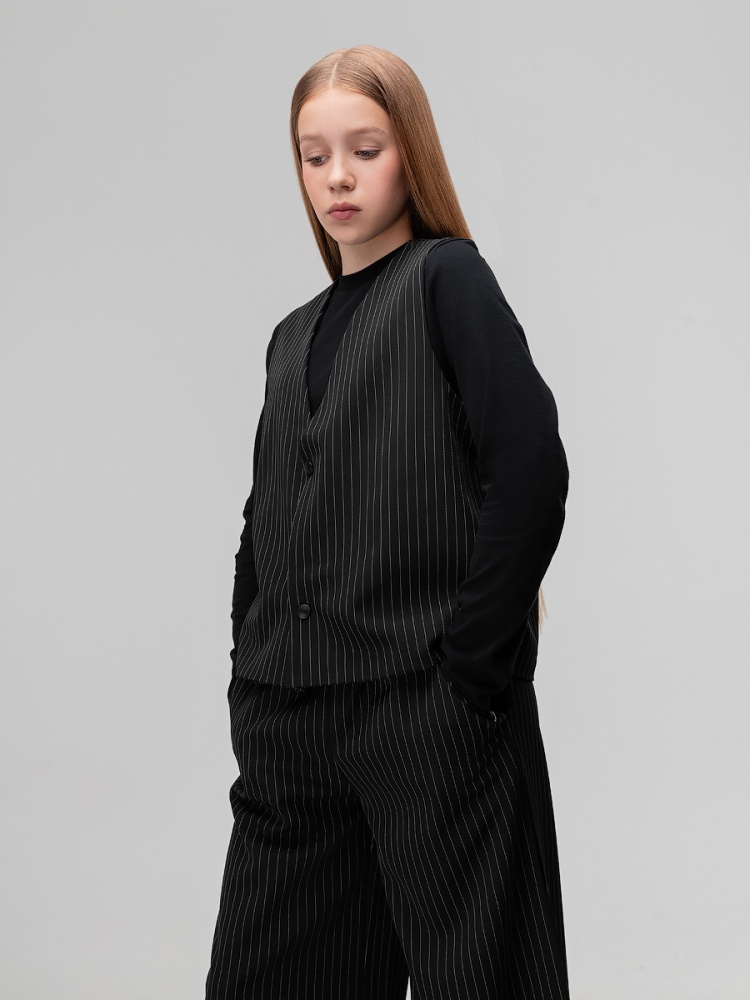 Жилет на подкладке, свободного силуэта, с застёжкой на кнопки, v- образный вырез.