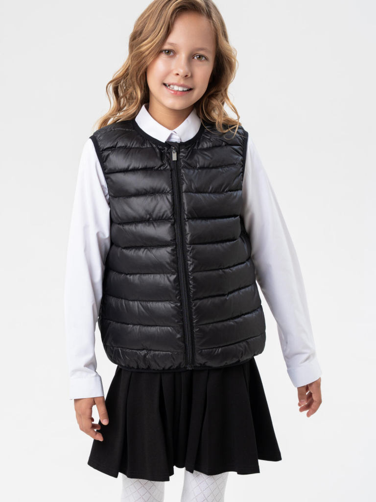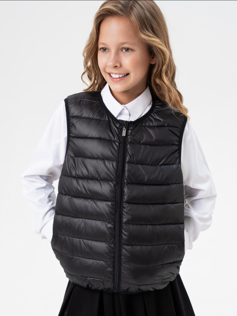 Жилет текстильный с полиуретановым покрытием для девочек черный