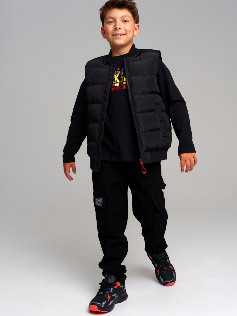 Жилет текстильный с полиуретановым покрытием для мальчиков черный