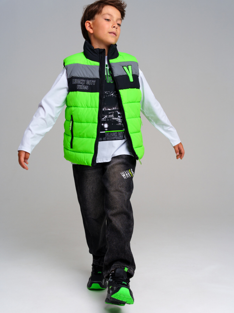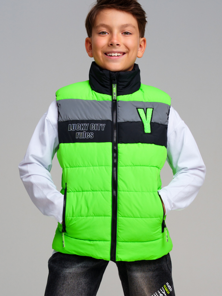Жилет текстильный с полиуретановым покрытием для мальчиков зеленый,черный,серебряный