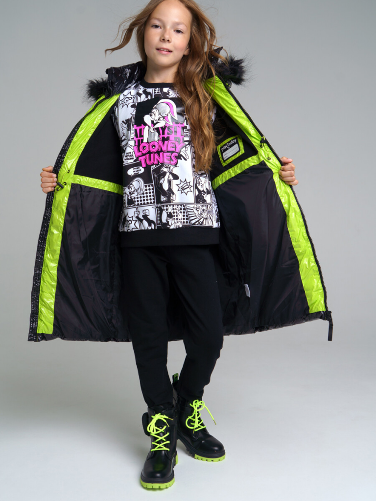 Зимнее пальто из материала с ветро-водоотталкивающим покрытием. Температурный режим до -15С. Наполнитель: искусственный пух. Комбинированная подкладка флис/таффета. Двухзамковая молния. Регулируемый капюшон. Съёмная меховая опушка. Внутренняя ветрозащитная планка. Регулировка низа изделия. Эластичный манжет (риб) по низу рукава. 2 кармана с молнией. Текстильный клапан для защиты подбородка при застегивании молнии. Светоотражающие элементы. Температурный режим является рекомендованным, необходимо учитывать уровень активности ребенка и многослойность поддевочной одежды (термобелье, флис).
