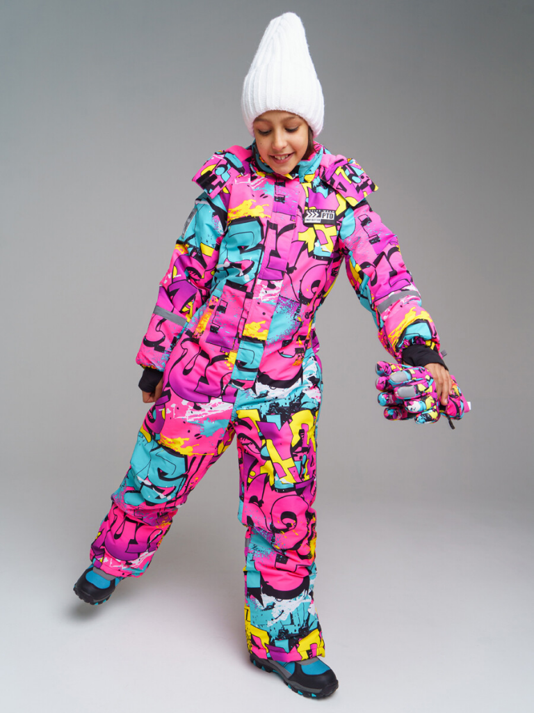> Зимний комбинезон из мембранной ткани для девочки разноцветный